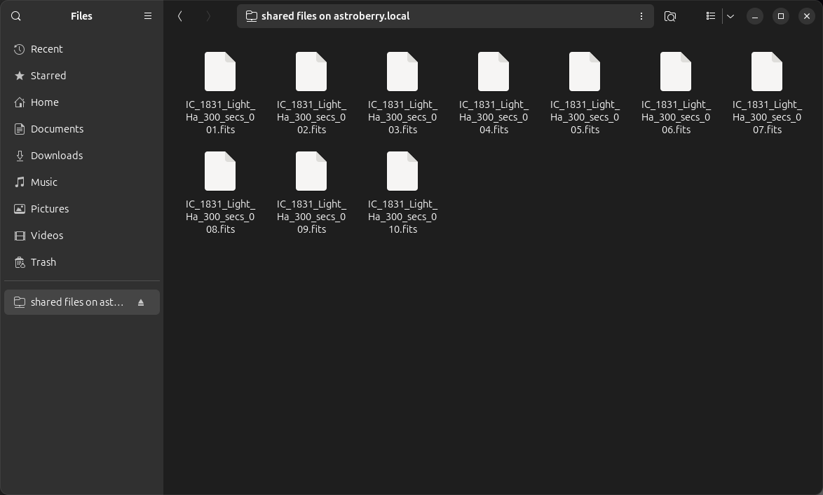 Wait, but where all these files are sitting, you ask. The answer is very simple, in the /home/astroberry/Shared directory.