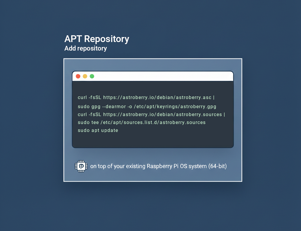 Run the following commands in your terminal to add Astroberry OS APT repository to your system.